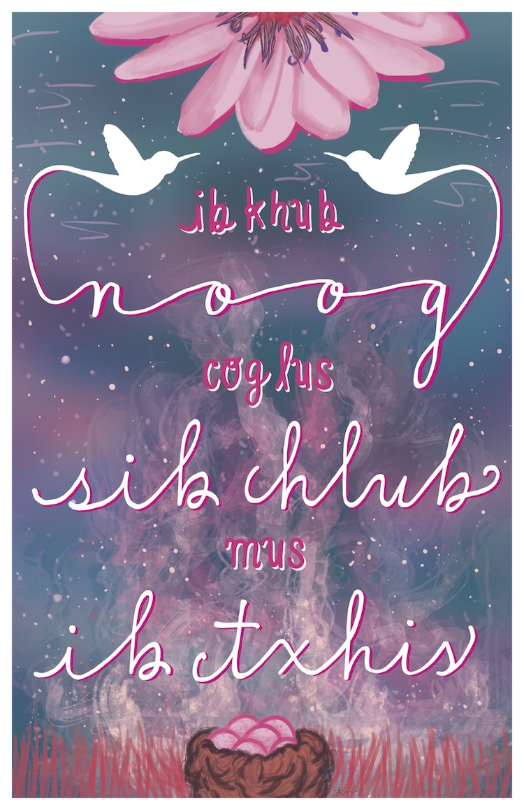 The current Hmong language used by Hmong-Americans is called the Hmong Roman Popular Alphabet, introduced about 70 years ago. Being children of immigrants, English was the priority to learn and Hmong eventually became secondary. Therefore, I have no formal education in Hmong. It is an instinctual language and I wish to preserve it in the limited ways I can. Having exposure to typography and hand lettering throughout university, I now approach Hmong as another way to express my art. I am not fluent but by connecting through art, I will continue to use Hmong. Finding meaning in dab neeg and ntawv, I strive to preserve Hmong language.