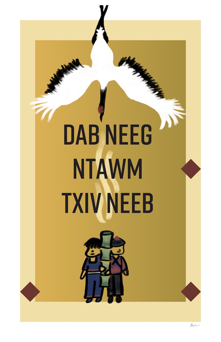 Throughout this exhibit, I work digitally through the Adobe creative suite with their applications such as Photoshop and Illustrator. The dab neeg found in this exhibit takes inspiration from the book, Folk Stories of the Hmong by Norma J. Livo and Dia Cha, as well as popular Hmong movies from the early 2000’s.