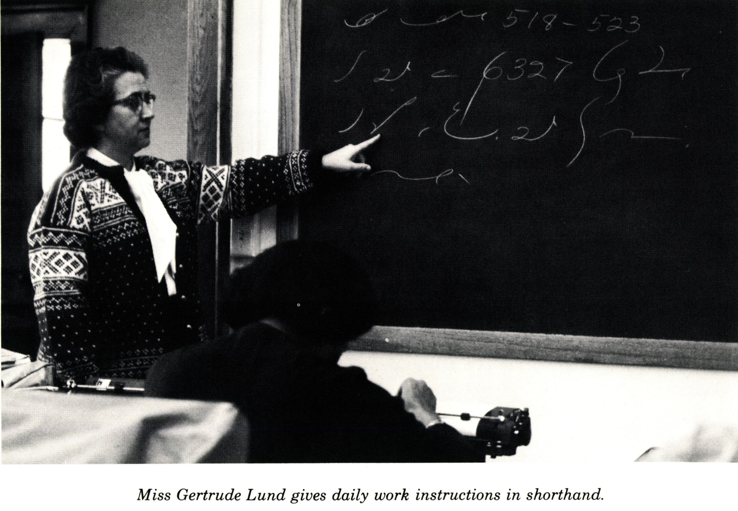 Throughout her career, she taught everything from beginning typing and shorthand to office management and principles of marketing. Students quickly learned that shorthand with Miss Lund meant only shorthand—no longhand allowed. Her crisp, efficient instruction demanded focus, but her high standards helped students develop confidence and precision, two qualities she believed were essential for success in any workplace.