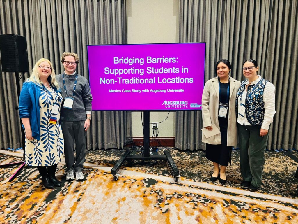 Augsburg staff members Fátima Mendoza and Lucy Hardaker co-presented a session titled: “Bridging Barriers: Supporting Students in Non-Traditional Locations.”