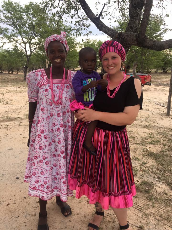 “While we were prepped not to expect electricity or running water, we quickly discovered that rural Namibia is just as diverse in its amenities as homes anywhere else might be; in my home the television is a staple piece of entertainment and electricity is plentiful, while running water existed only at a tap from the ground a few meters from the living quarters. While electricity is plentiful at my homestead, the family still uses traditional practices of the open fire to cook meals– incredible meals, I must add!”
