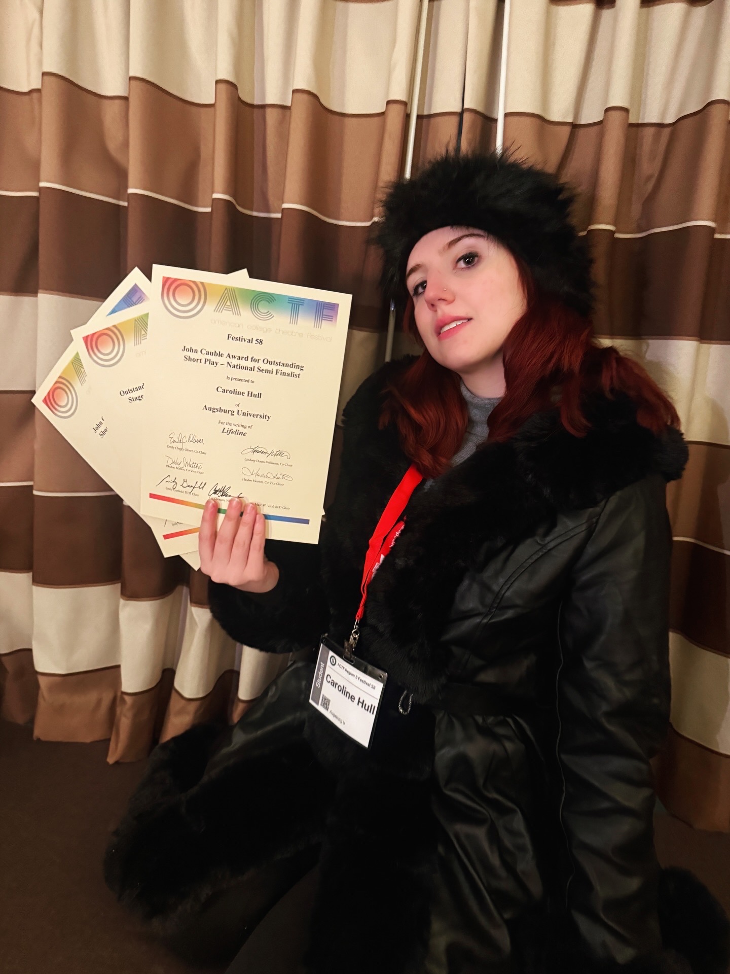 At Augsburg, we are proud not only of Caroline’s achievement, but of the courage behind it — the choice to write honestly, to take risks, and to create work that expands the stories we tell and the experiences we make room for onstage.