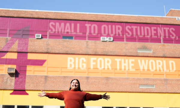 The Sudanese-American musician, poet, and activist began writing poetry their second year at Augsburg and performed at open mic events. Seeing people’s positive responses encouraged Saleh to write songs and make music, which led to the eventual release of two EPs. Previously, Saleh performed in an underground theater in Minneapolis. The Netflix show is their first professional acting role.