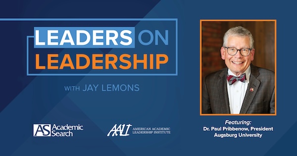 Augsburg University President Paul Pribbenow was the featured guest on a recent episode of the “Leaders on Leadership” podcast from Academic Search and the American Academic Leadership Institute. The podcast, hosted by Jay Lemons, highlights stories and insights about leadership in the academy from higher education leaders.