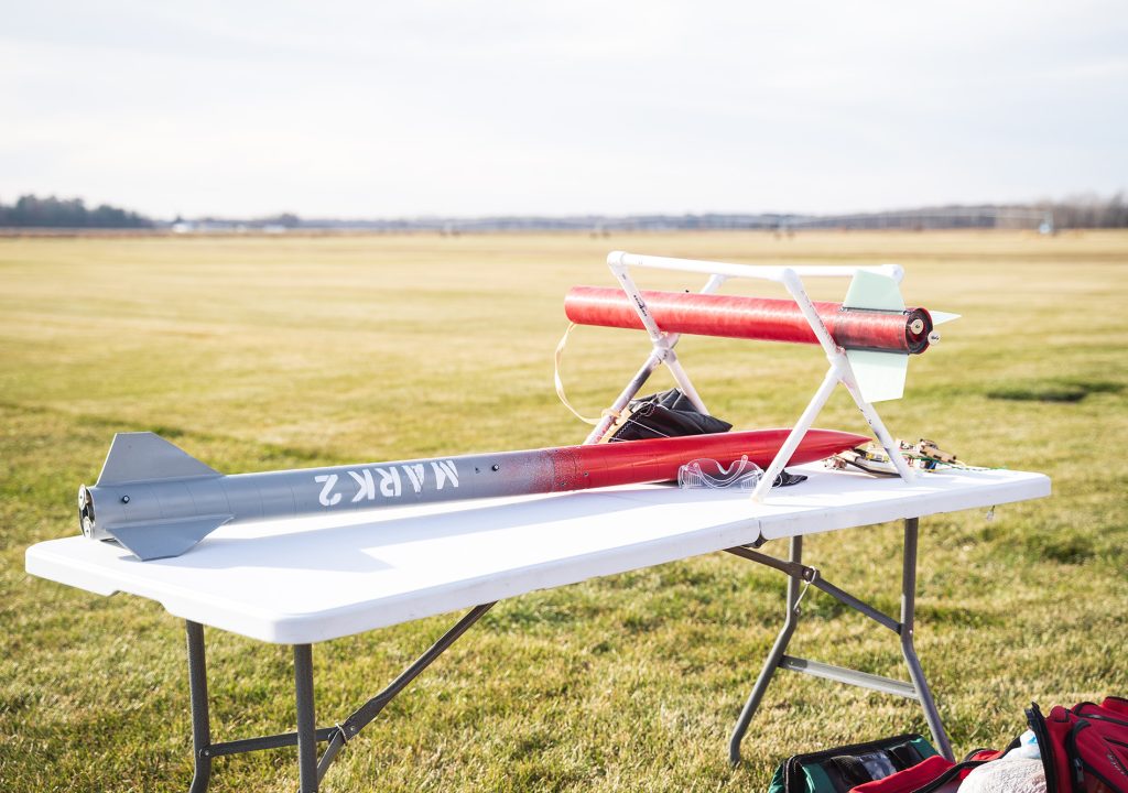 Several of these institutions, including Augsburg, will compete in the 2025–26 Space Grant Midwest High-Power Rocket Competition launch day in May, which takes place on a private sod farm in North Branch in partnership with the Minnesota chapter of the national Tripoli Rocketry Association. Abdi explains that this year’s competition involves “roll control,” or devising a mechanism to control the direction and degree of spin during flight. Teams will also use a downward-facing camera to decode a message displayed on the ground before landing their rockets safely. He expects the rockets to reach an altitude of up to 3,000 feet based on their motor size.