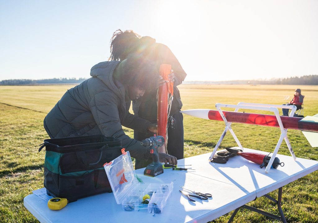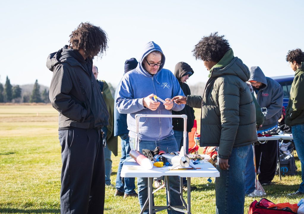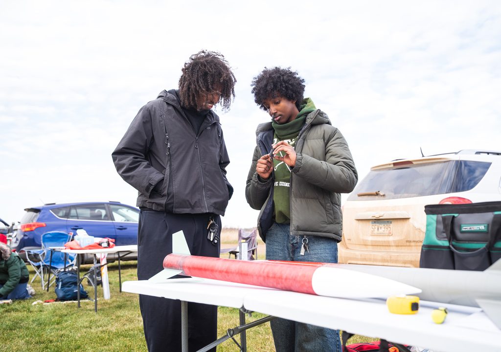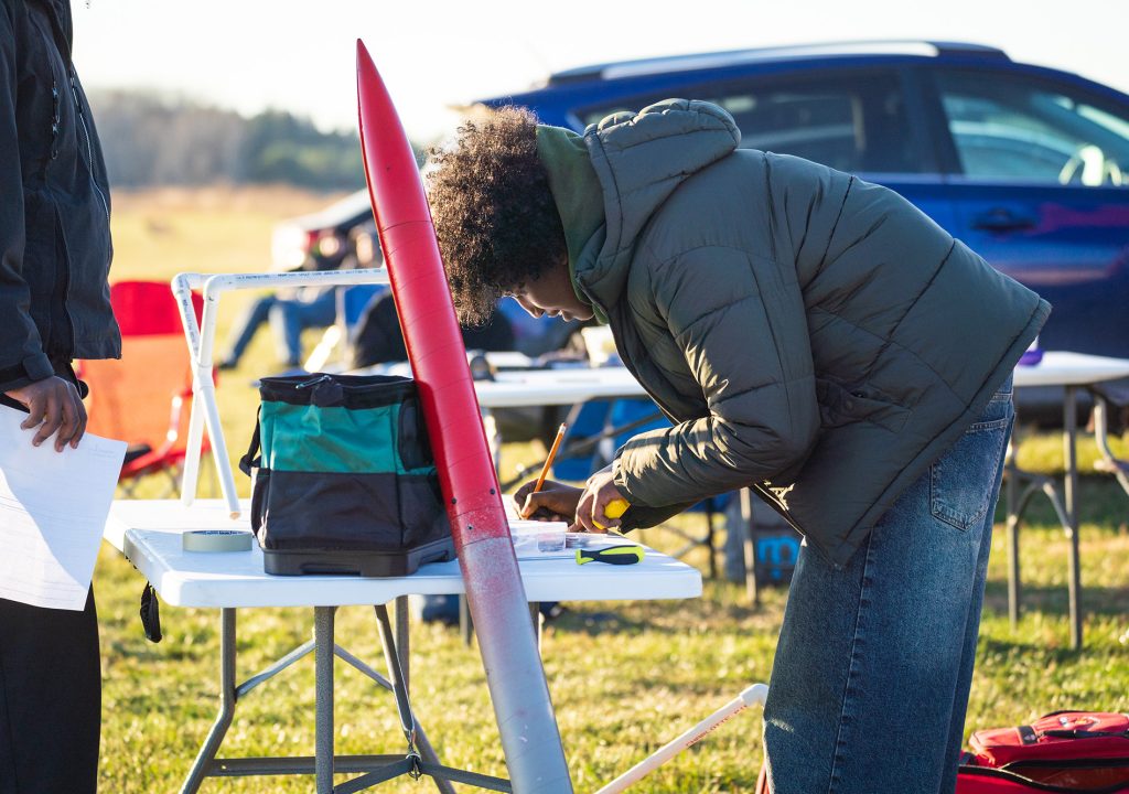 Mubarak Abdi ’27 received a national high-powered rocketry certification in 2025. (Photo by Courtney Perry)