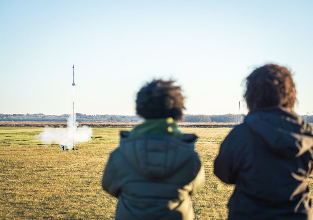Students from Augsburg’s Rocket Club participated in a launch day in North Branch, Minnesota, in November 2025. (Photos by Hayley Selinski)