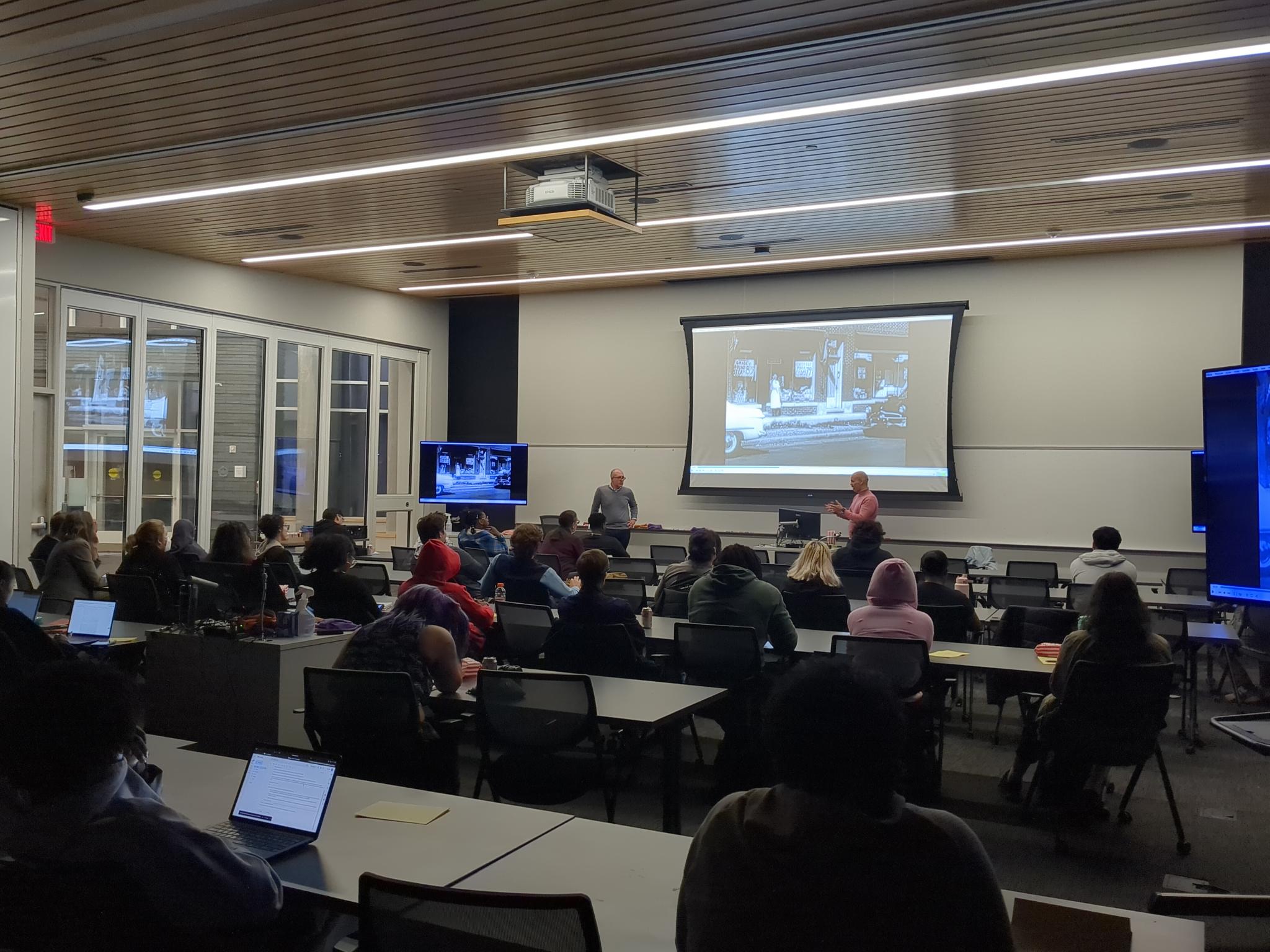 The film – a compelling blend of deep research, candid interviews, and rare archival footage- explores the history of police reform in Minneapolis.  It illustrates how mayoral politics, community activism, and police union pushback shaped the city’s trajectory as well as what is at stake for the future of public safety. Over the course of a 2 hour event, Lansing and Bergin showed a number of clips from the documentary, providing introductory framing and commentary throughout. The audience asked many wonderful questions that gave these two space to elaborate about the film and the careful historical work that went into developing it.
