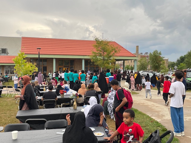 Tables outside the Brian Coyle Community Center for the Annual Cedar Riverside Multicultural DinnerI look forward to the Cedar Riverside Multicultural Dinner that is held annually at the Brian Coyle Center. It is an amazing gathering of people from all corners of the neighborhood who come together to share a meal, enjoy cultural performances, and build community. The Multicultural Dinner combines so many things that I love about the Cedar Riverside neighborhood – hospitality, kindness, generosity and diversity all combined together with a dose of controlled chaos!